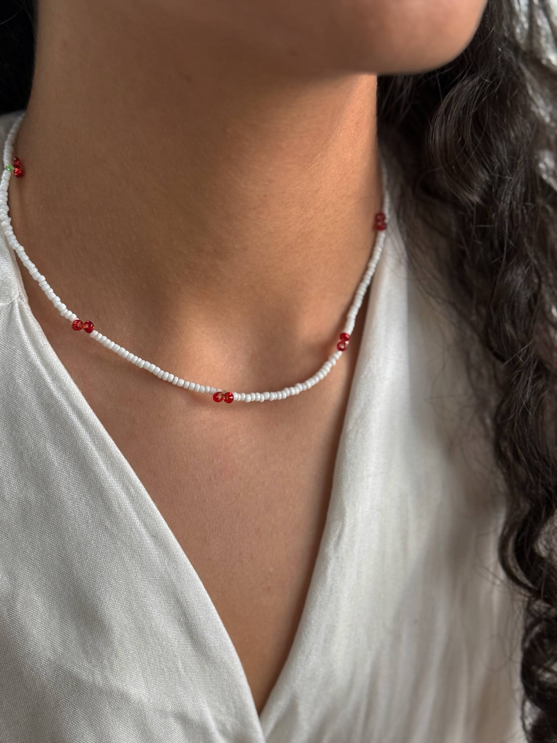 گردنبند منجوق گیلاس🥲❤️ قفل آبکاری