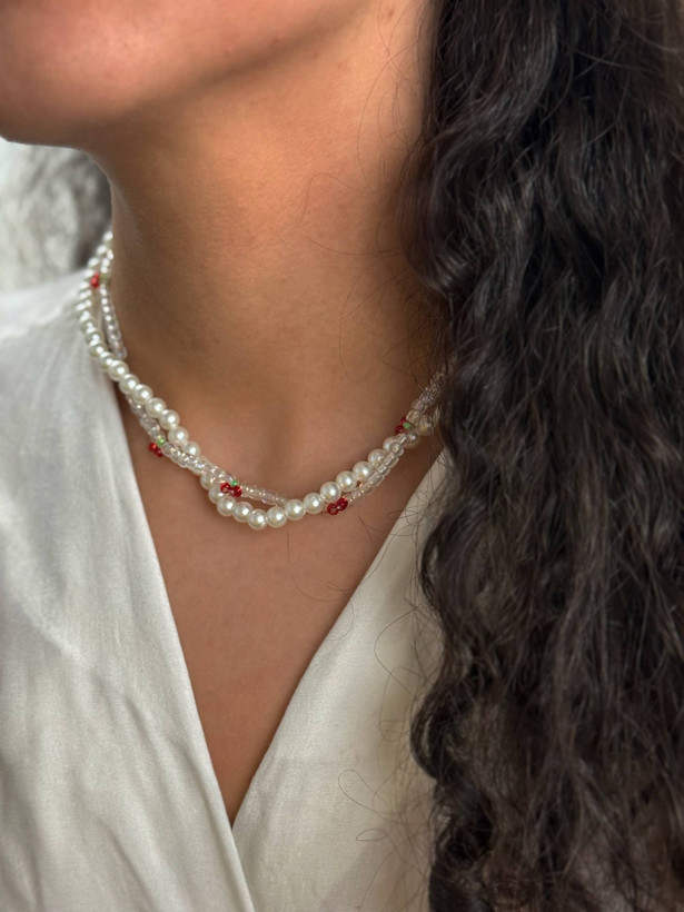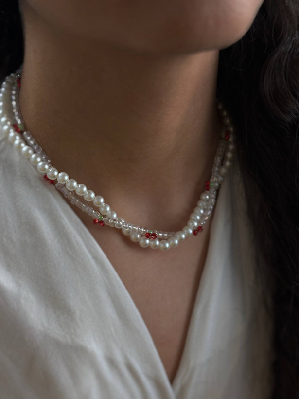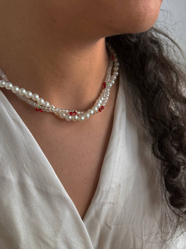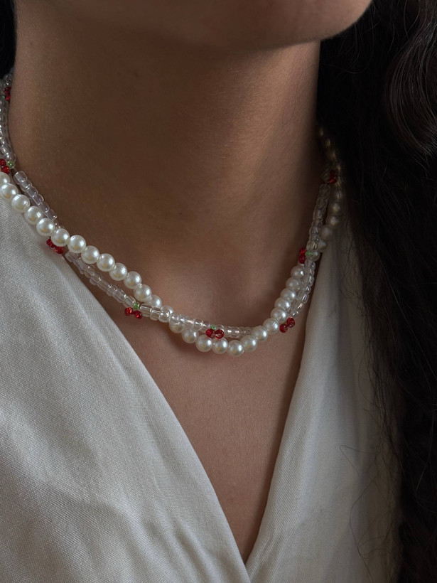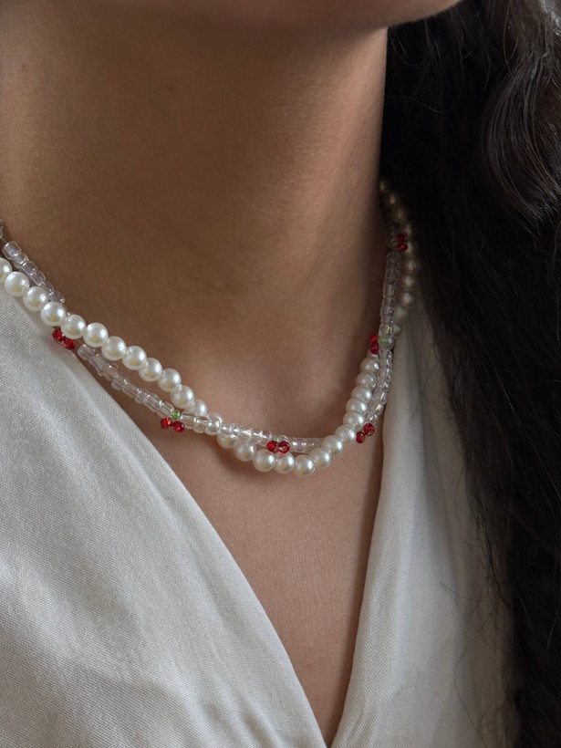 گردنبند دولاین گیلاس مروارید🥲❤️ قفل آبکاری شده✨