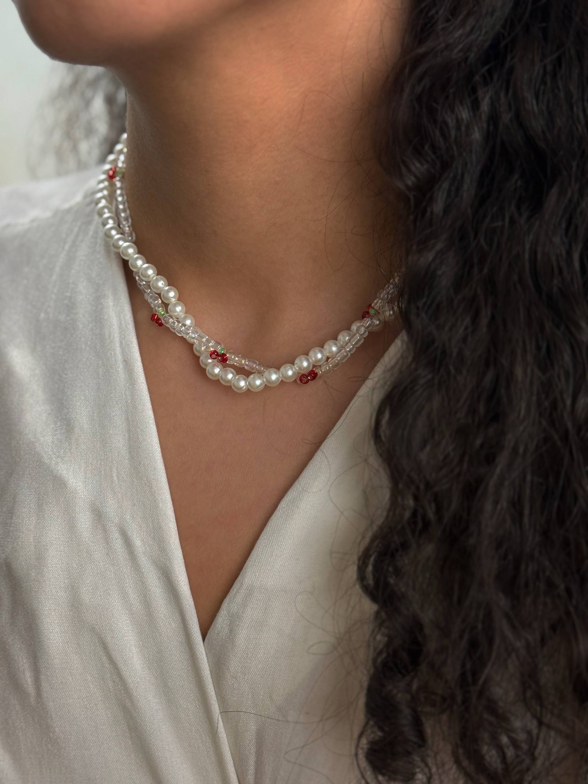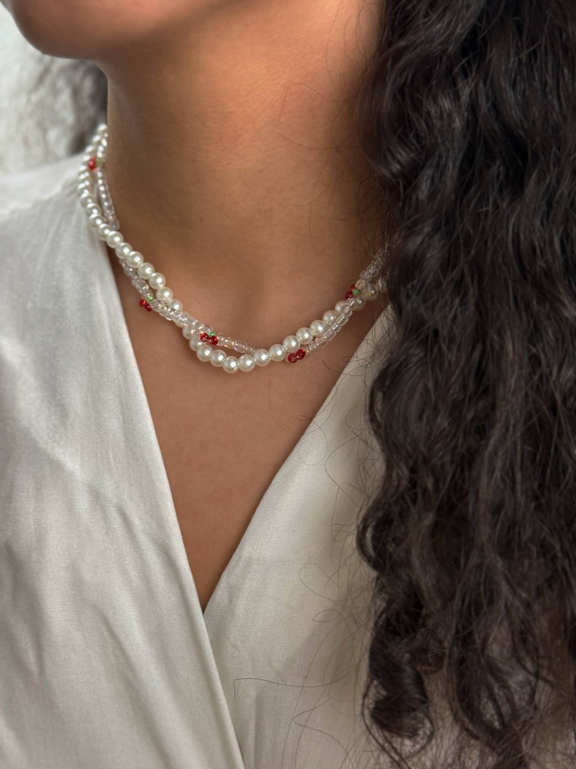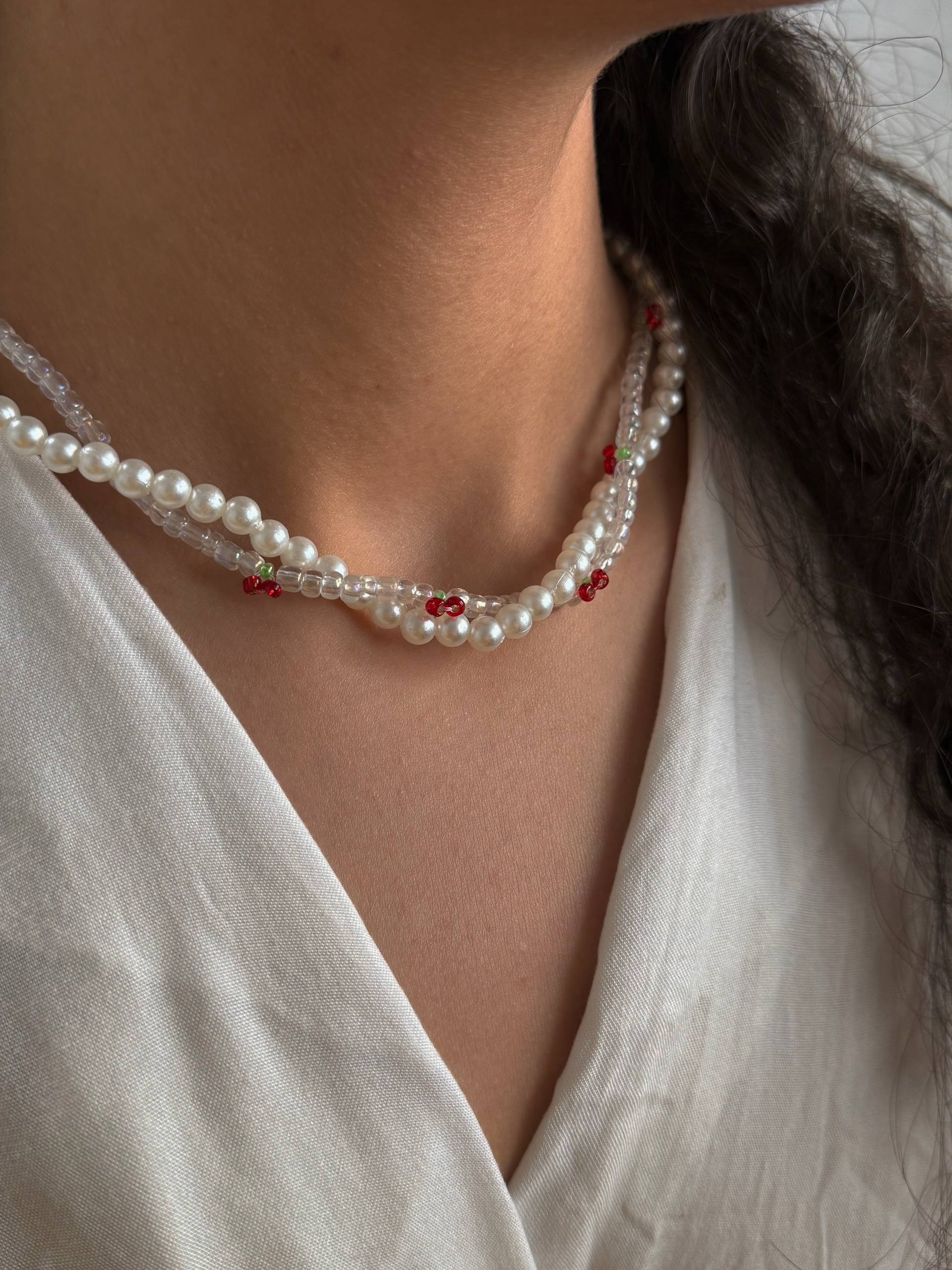 گردنبند دولاین گیلاس مروارید🥲❤️ قفل آبکاری شده✨
